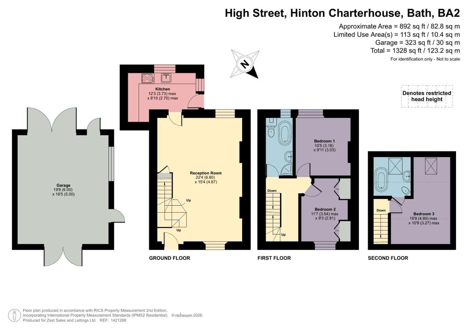 The first floor hosts two well-proportioned bedrooms, both offering comfortable and versatile accommodation, along with a stylish family bathroom fitted with a four-piece suite. Occupying the entire second floor is a further bedroom, which benefits from its own en-suite bathroom.